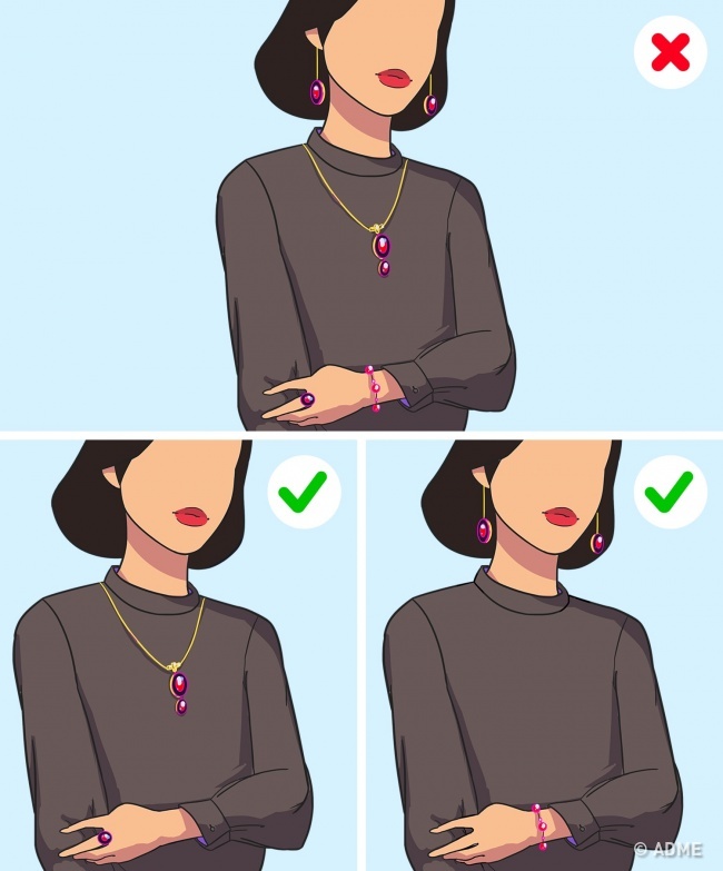 3. Поєднуйте сережки з браслетом, а намисто або кулон — з кільцем. 3 або 4 предмети в одному образі — це перебір