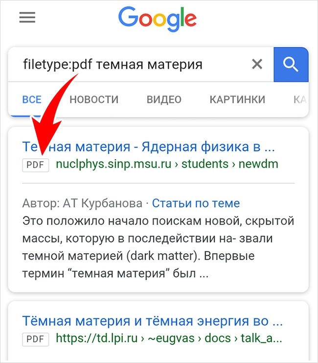 Припустимо, вам потрібно знайти якийсь документ у форматі pdf. Для цього введіть у пошуковий рядок filetype:pdf і слово або словосполучення, за яким бажаєте отримати документ у вказаному форматі.