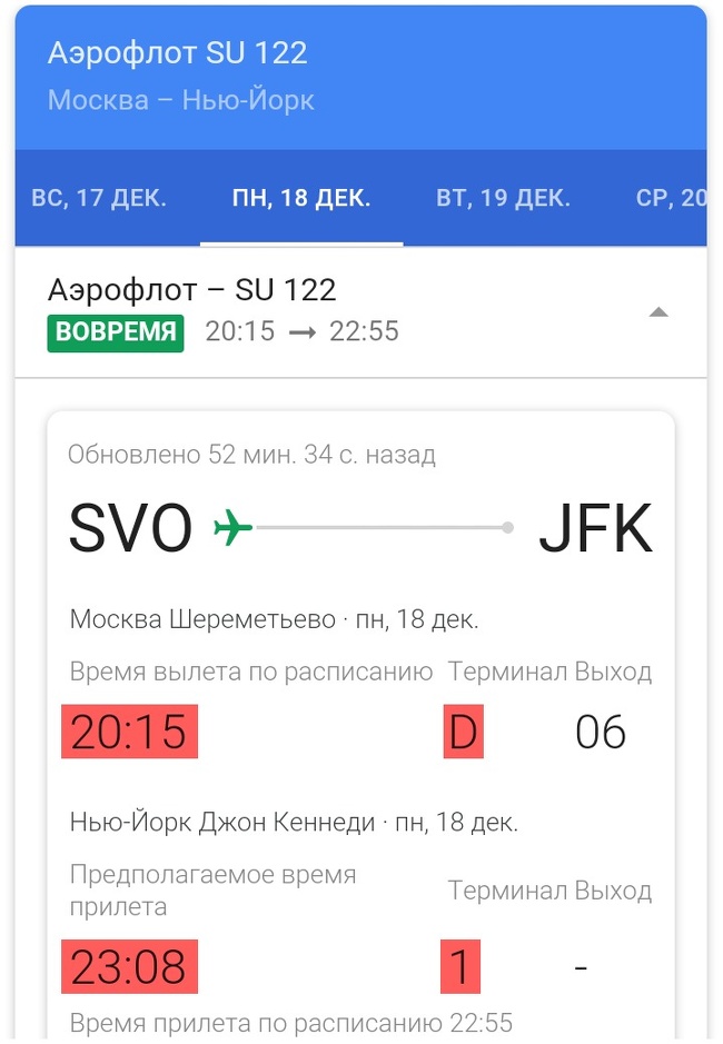 Якщо ви знаєте номер цікавить вас рейсу і виконує його авіакомпанію, ви можете відстежити його статус, ввівши в пошуковий рядок назва компанії і номер рейсу, наприклад Aeroflot 122.