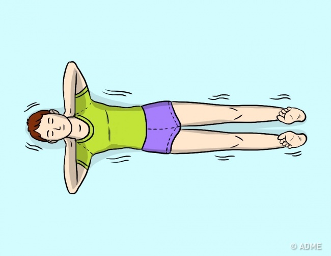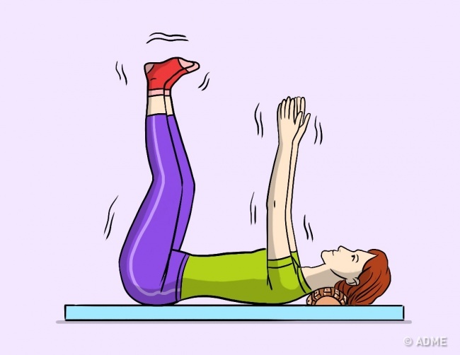 - Поєднуємо рух ногами з рухом рук, описаним у пункті 2. Якщо ви відчуваєте біль або дискомфорт, кількість повторів цієї вправи на перших порах можна зменшити. Приймаємо початкове положення і лежимо в ньому, закривши очі, 10 хвилин.