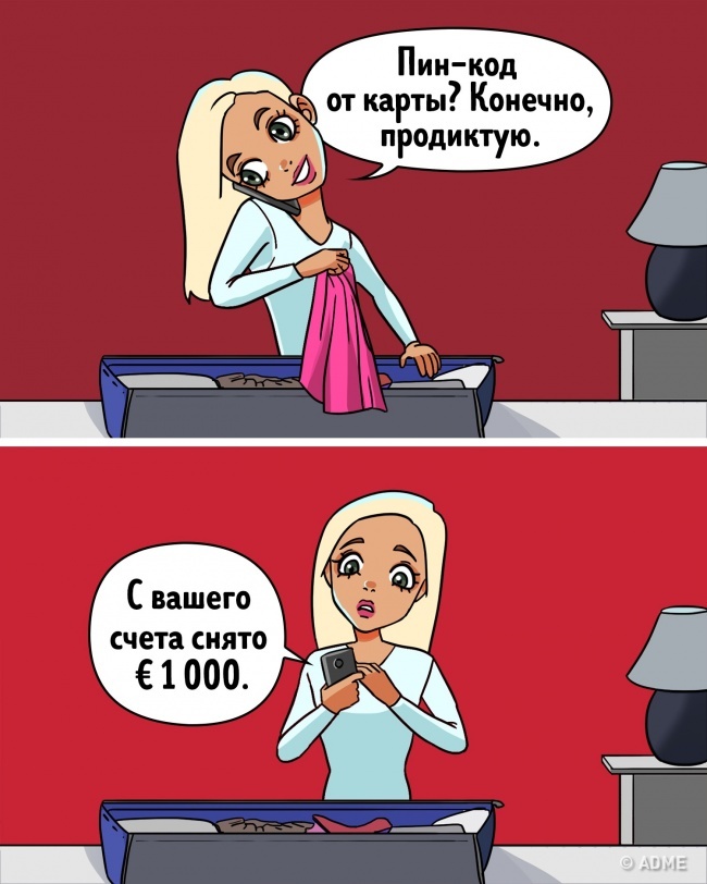 Ніколи нікому не повідомляйте цю інформацію. Якщо ж вас будуть наполегливо вмовляти, скажіть, що готові спуститися на ресепшен і оплатити проживання самостійно. Швидше за все, шахрай знітиться.