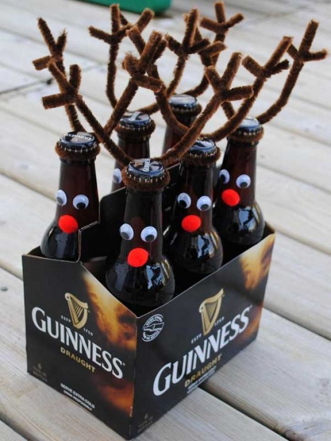 Будь-які пляшки можна з легкістю перетворити в забавних різдвяних оленів. Трохи дроту та ниток, і по-справжньому новорічний подарунок готовий!