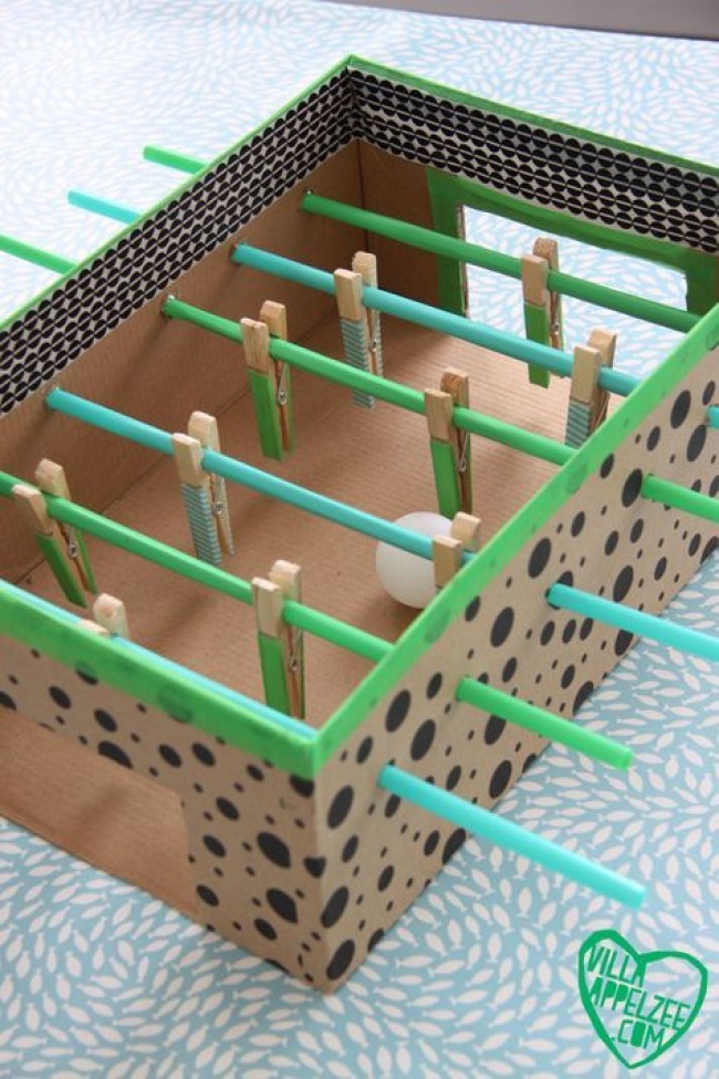 При великому бюджеті можна, звичайно, купити оригінальну або міні-версію настільного футболу. Але навіть саморобна іграшка викличе справжній фурор у веселій і згуртованою компанії.