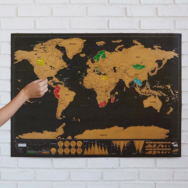 Любителям подорожей точно припаде до смаку така оригінальна карта, на якій відвідані країни потрібно прати монеткою.