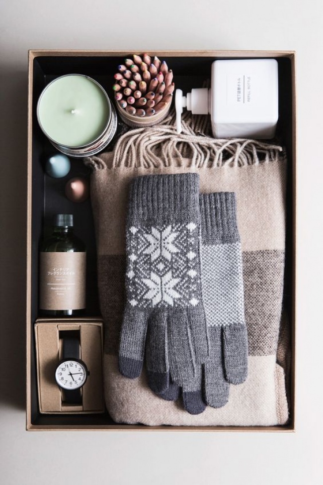 Сформуйте персональний зимовий набір з найнеобхіднішими речами. Пам'ятайте, що ваш подарунок не обов'язково повинен коштувати надзвичайних грошей: парочки мандаринів та набору спецій для глінтвейну разом з красивим шарфиком буде достатньо, щоб зігріти будь-яке серце.