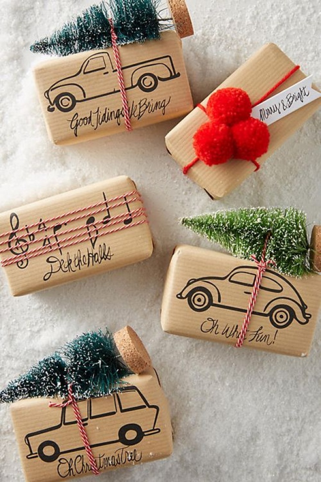 Правильна упаковка зробить будь-який подарунок індивідуальним. Запакуйте ваш презент в однотонний папір і прикрасьте невеликим саморобним малюнком, що символізує хобі одержувача: невелика машинка — для фанатів автомобілів, котик — для любителів пухнастиків, ноти для людей, що грають на музичних інструментах або просто цінують хорошу музику, і так далі.