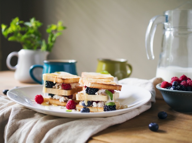 - Змастити сирною масою, зверху викласти ягоди і накрити другим шматочком хліба.