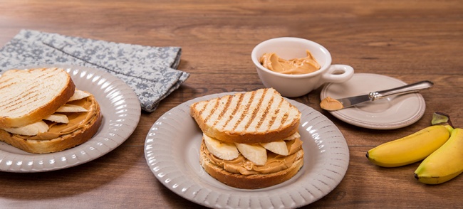 - Банан, нарізаний скибочками, викласти зверху на арахісову пасту.