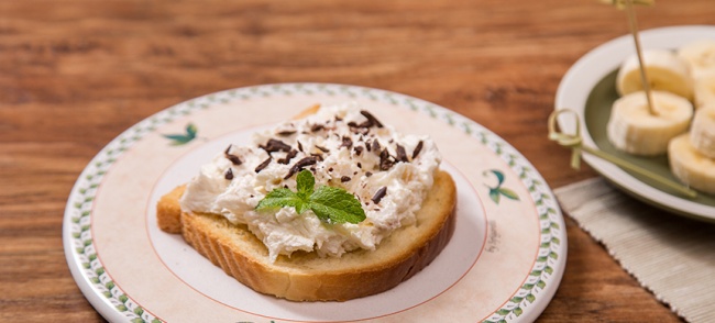 - На скибочку хліба викладаємо сирно-бананову суміш.