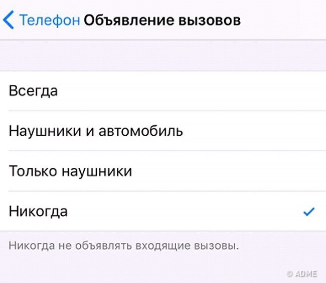 Дратуєтеся від частих дзвінків, з-за яких доводиться діставати телефон з внутрішньої кишені куртки? Можна відповідати на дзвінки з навушників. Для цього увімкніть тумблер «Оголошення викликів». Тепер при кожному дзвінку у ваші навушники буде відтворюватися ім'я абонента.