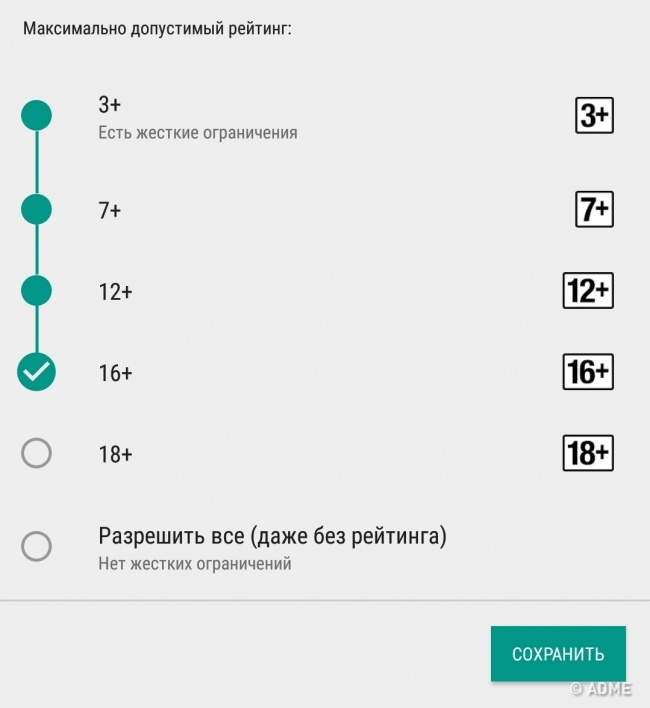 Захистіть свою дитину за допомогою функції «Батьківський контроль». Встановіть в Google Play необхідні вікові обмеження, щоб захистити дитячу психіку від неположенного контенту.