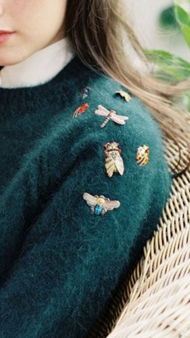 Ось так кілька брошок перетворюють звичайний повсякденний светр у святкове вбрання.