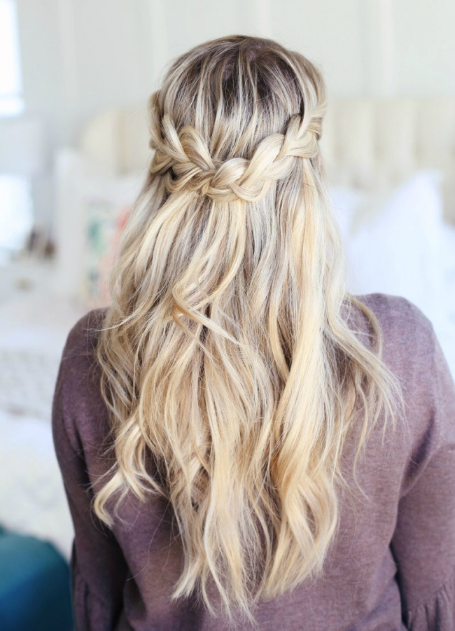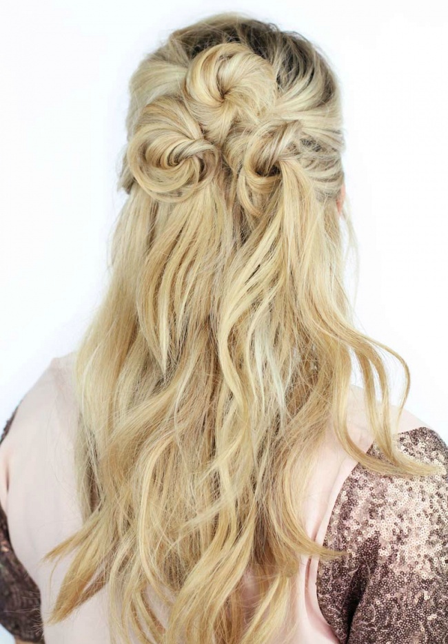Ця зачіска — аналог попередньої. Тільки замість того, щоб закріплювати кіски, в цьому варіанті укладання їх можна залишити вільно звисаючими. Детальніше — тут.