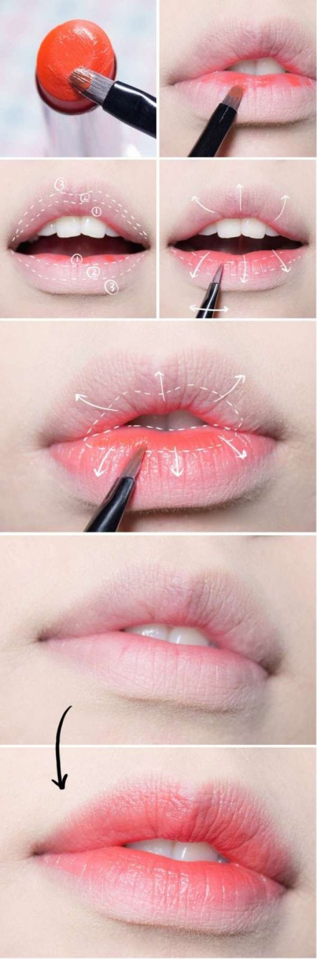 Цей лайфхак придумали корейські модниці. Нанесіть помаду на внутрішню частину губ, а тональний крем — на зовнішню, і додайте крапельку блиску. Так губи будуть виглядати більш пухкими і соковитими.