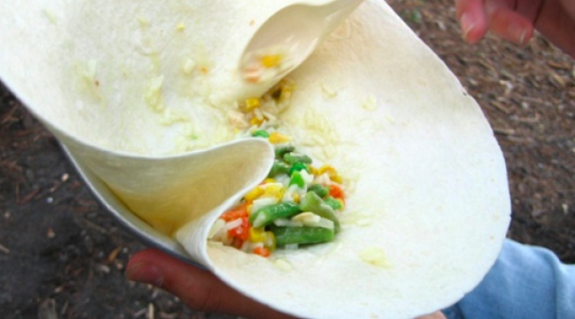 Влаштуйте грецьку вечірку. Покладіть тонку корж на тарілку, а вже потім всю іншу їжу. Тарілки потрібно буде просто сполоснути від борошна.