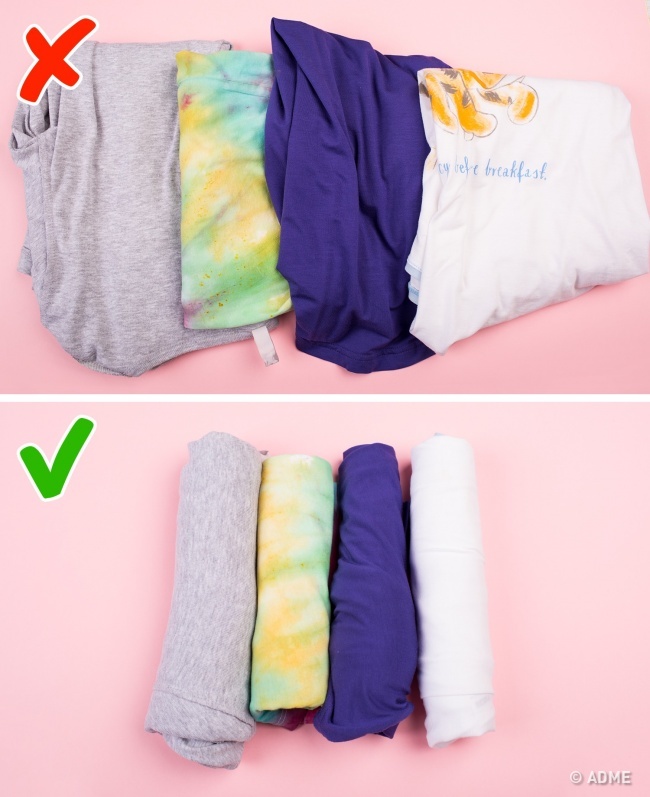 1. Скручуйте одяг у рулони