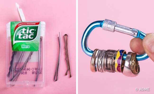 8. Покладіть шпильки в коробочку від tic tac, а кільця просмикніть через карабін