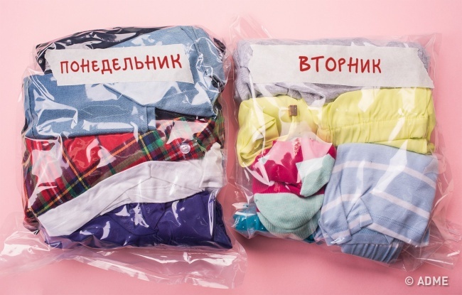Це допоможе заощадити час, коли ви будете вирішувати, що одягнути. Даний лайфхак особливо стане в нагоді під час подорожі з маленькими дітьми. Таким же чином можна упакувати комплекти одягу для різної погоди.