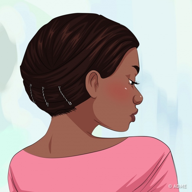 - Після правильного миття голови зачекайте, поки волосся залишаться трохи вологими, і зав'яжіть їх у тугий низький хвіст. Якщо у вас є чубчик або короткі пасма, що випадають з хвоста, — закріпіть їх невидимками. Розчешіть хвостик, щоб не залишилося вузликів.