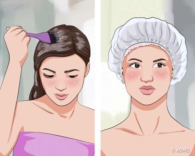 В однаковій пропорції змішуються оливкова, касторове і реп'яхову масла. Кількість масла залежить від густоти і довжини волосся. Отриману суміш підігрівають на водяній бані, розподіляють по всій довжині волосся і тримають мінімум 40 хвилин, обернувши волосся теплим ковпаком.