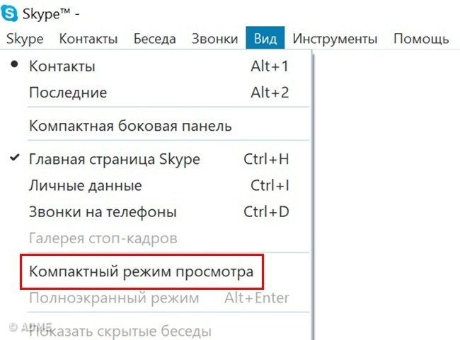 Якщо ви спілкуєтеся одночасно з декількома співрозмовниками, але перемикатися між вікнами вам не дуже зручно, можна відкрити декілька вікон поруч: просто переходимо в меню «Вид» — «Компактний режим перегляду». Щоб повернутися до стандартного вигляду Skype, йдемо в «Вид» — «Відображення в одному вікні».