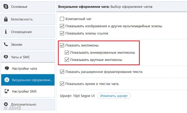 Іноді вони дратують і відволікають (особливо під час ділового листування). Йдемо в «Настройки» — «Чати і SMS» — «Візуальне оформлення». Там можна вибрати відображення анімованих і великих эмотиконов, а якщо зняти всі галочки, то смайли перетворяться в стандартні нерухомі.