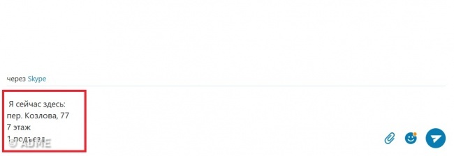 Повідомлення в Skype приходять після натискання Enter. Коли потрібно почати новий рядок (наприклад, при написанні адреси), вона автоматично переміщається у початок наступного повідомлення. Щоб ввести новий рядок у поточному повідомленні, а не відправляти повідомлення, натиснувши Enter, використовуйте комбінацію Shift+Enter.