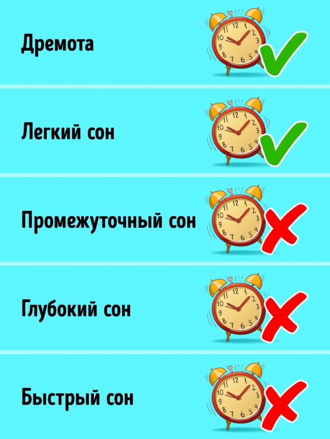 Проте вчені з'ясували, що у фазу швидкого сну мозок людини переробляє й поширює інформацію, а різке пробудження в цей час сприяє виникненню психічних відхилень. Тому по завершенні циклу легке і швидке пробудження виявиться можливим на кордоні швидкого сну та дрімоти.