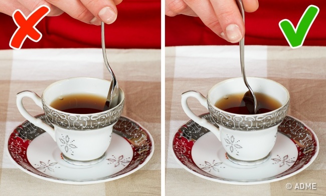 Цукор у чаї потрібно розмішувати плавно, не стукаючи по стінках ложкою.