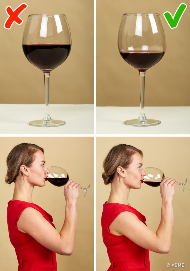 Не наповнюйте келихи до країв, особливо вином. Щоб, підносячи до рота, випадково не пролити напій на себе.