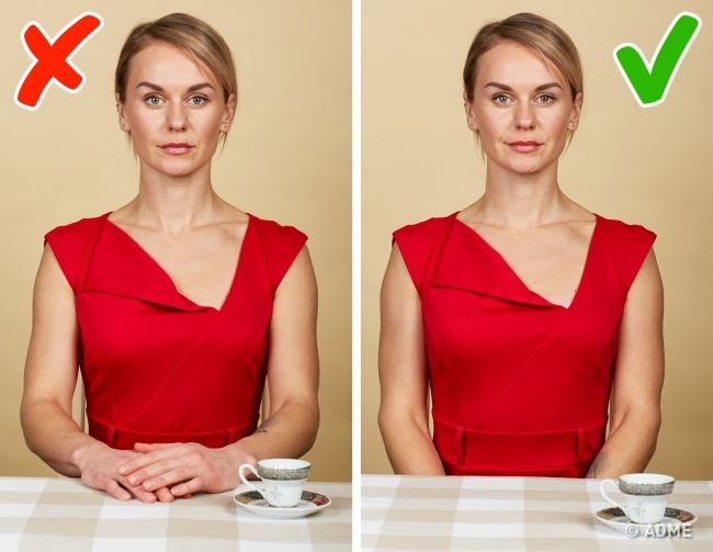 - Слідкуйте також за руками. Ні в якому разі не кладіть їх на стіл, а тримаєте на колінах. Те ж саме стосується телефону. Кладучи телефон на стіл, ви показуєте, наскільки сильно вам цікава бесіда.