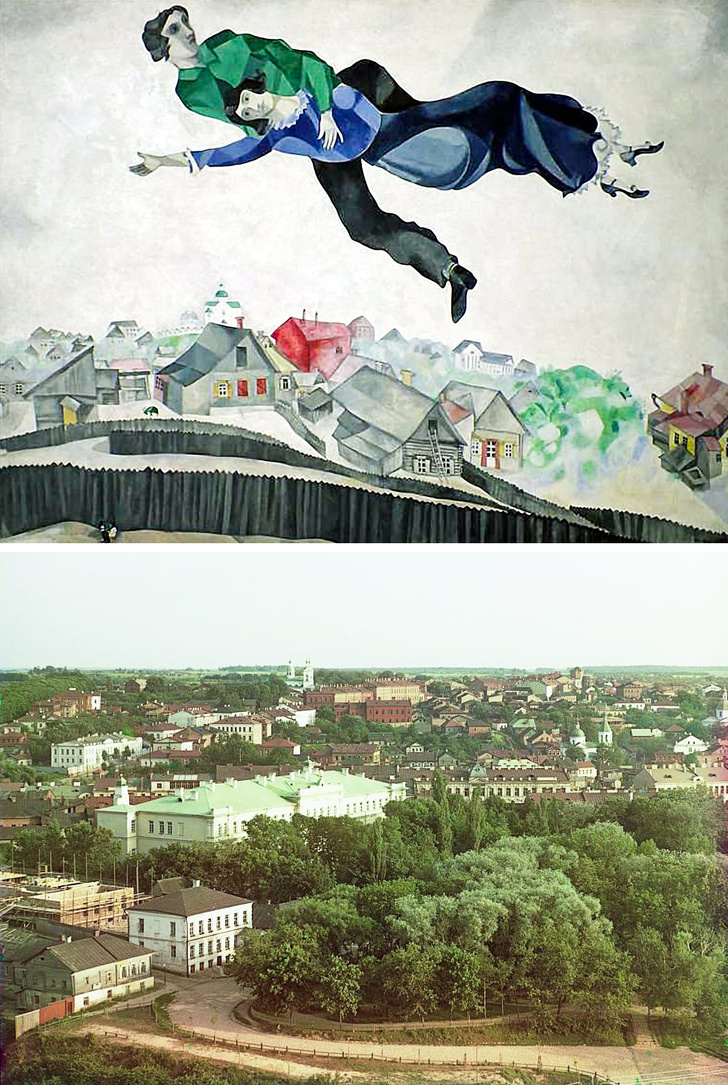 Дружина Марка Шагала Белла згадувала, що, коли вони нарешті одружилися, вона відчувала себе так, ніби летить над квітковими полями, будинками, дворами, церквами. І це почуття було взаємно: Крокував написав цілу серію картин, на яких зобразив себе і Беллу летять над Вітебськом.