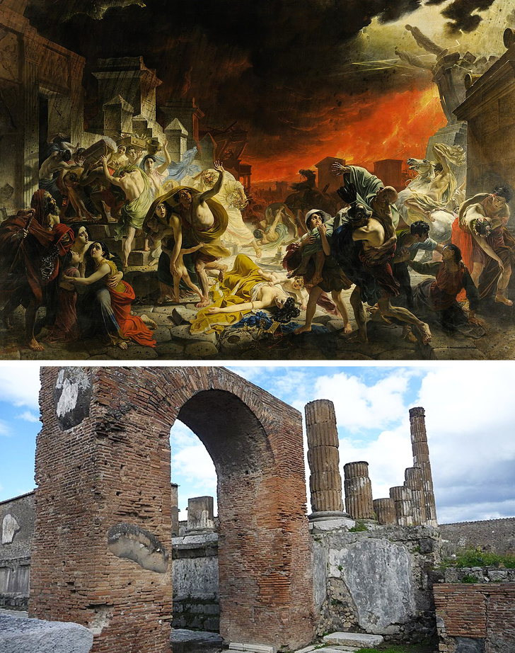 Карл Брюллов відвідав розкопки Помпеїв під час поїздки в Італію і саме тоді придумав ідею картини. Після художник ретельно вивчив свідчення тих, хто був в Помпеях до катастрофи, особливо листи Плінія молодшого Тациту. Робота зайняла 6 років, але варта того — успіх був приголомшливий. Скрізь, куди б не привозили картину: в Рим, Париж, Петербург, — вона отримувала виключно позитивні відгуки і нагороди.