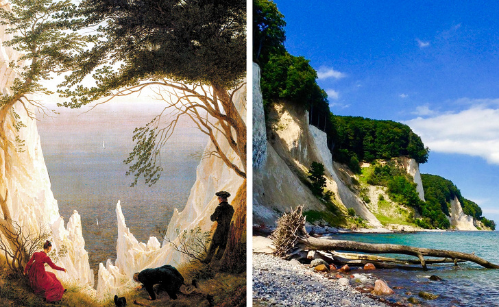 Цю картину Каспар Давид Фрідріх написав під час медового місяця. Себе і молоду дружину Кароліну художник зобразив у вигляді дерев, які стосуються один одного гілками. Конкретне місце знайти не вийде, тому що картина створена на основі безлічі записів, зроблених по всьому острову.