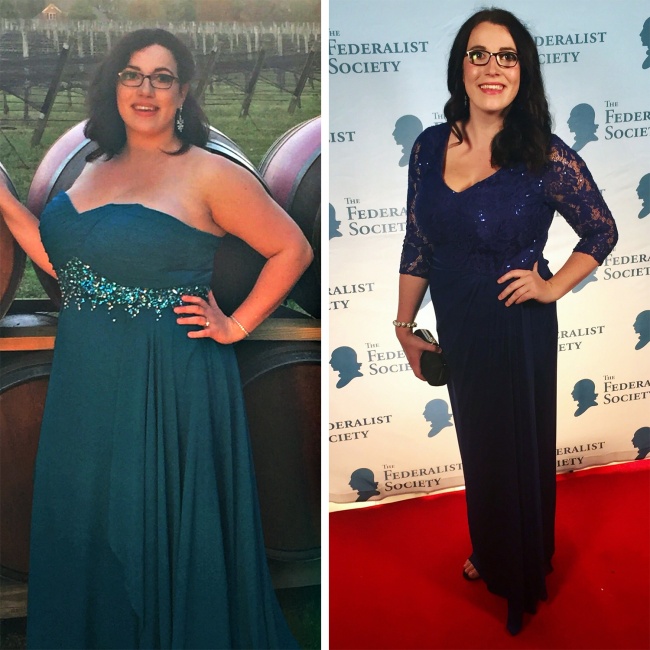 «Два роки тому я вирішила схуднути. Я втратила 23 кг. Зараз я продовжую худнути і бігаю на дистанцію в напівмарафон. А в цьому платті була сьогодні на роботі»