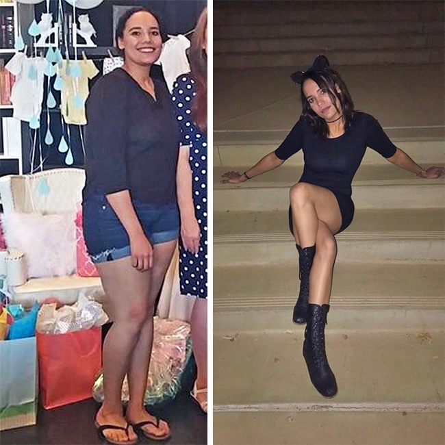 «Мені 25 років, зріст — 168 див. Раніше я важила 169 кг, потім схудла до 91 кг за 11 місяців. Я не можу повірити в те, що так змінилася, але моя нова мета — 63 кг, і я знаю, що у мене вийде»
