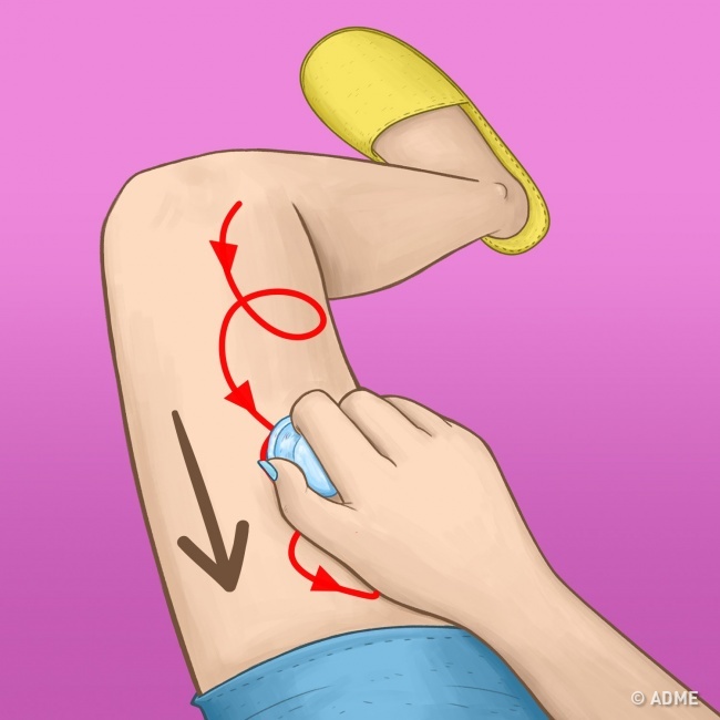 Також будьте гранично обережні під час самомасажу. Ніяких синців бути не повинно. Рекомендується уникати області під колінами і внутрішньої поверхні стегна.