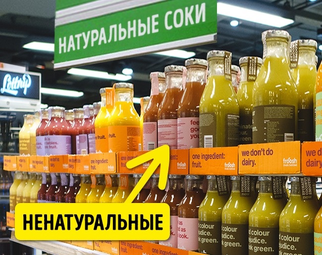 Щоб сік не зіпсувався, фрукти штучно позбавляють кисню. На жаль, під час цього процесу у них пропадає смак і запах. Тому виробники додають ароматизатори та інші харчові добавки, так що сік вже не має права називатися 100%-вим.