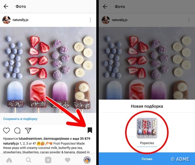 В нижньому правому куті під фотографією натисніть на прапорець, потім «Зберегти до збірки» придумайте зручне назву. Готово! Тепер ви легко знайдете улюблені публікації.