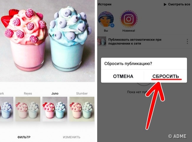 З-за відсутності інтернет-з'єднання ви побачите повідомлення «Публікувати автоматично при підключенні до мережі». Не забудьте скинути публікацію, щоб фото не з'явилося у стрічці ваших друзів пізніше, і шукайте фото в галереї вашого телефону.