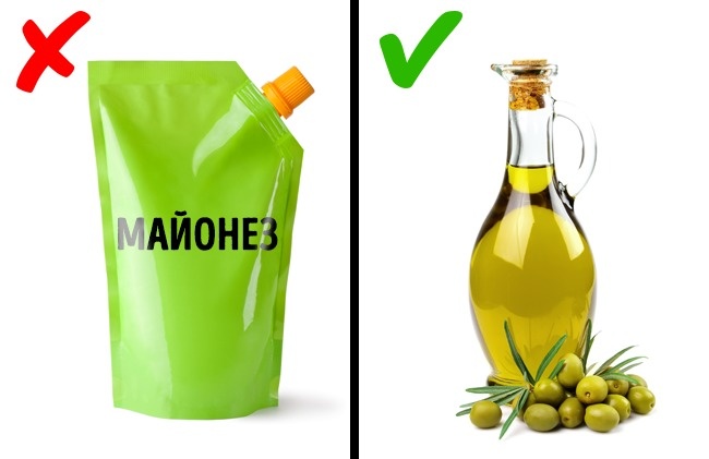 Даний продукт з раціону необхідно виключити повністю. Він висококалорійний і трудноусваиваемый. Салати краще заправляти оливковою олією або готувати домашній майонез. А якщо без покупного ніяк не вижити, то хоча б розбавляти його знежиреним йогуртом в співвідношенні 50 : 50.