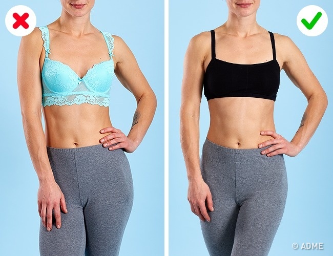 - Ідеальний варіант для будинку — це спортивні топи вашого розміру. Вони дозволяють шкірі дихати, підтримують груди і не доставляють дискомфорту.