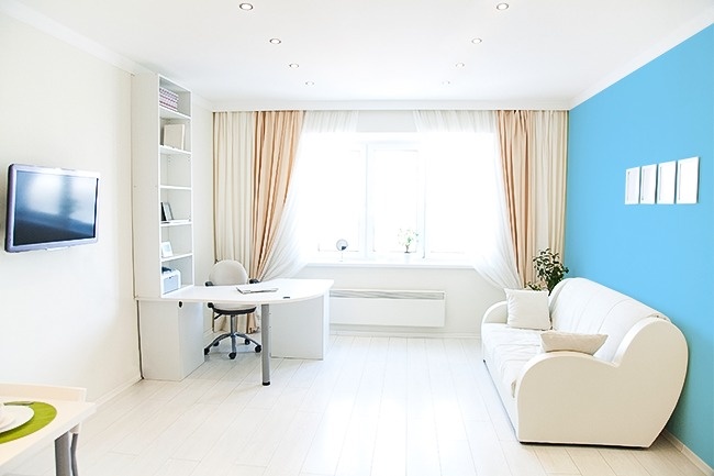 Якщо стіни в кімнаті білі або якогось дуже спокійного відтінку, то вам часом досить просто перемістити весь акцент на одну із стін. Пофарбуйте її в яскравий колір, і інтер'єр відразу заграє по-новому. До того ж це досить незвичайне рішення в дизайні.