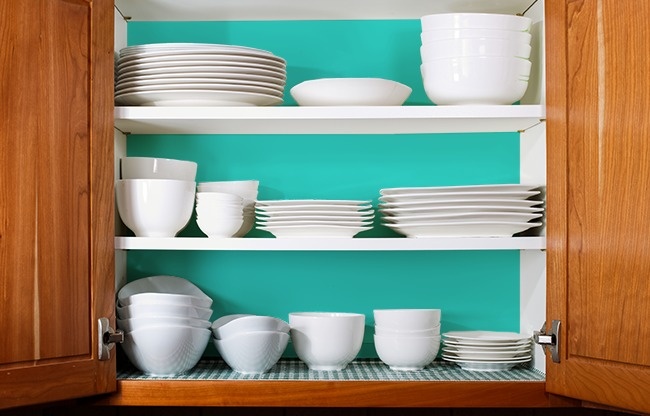 Біла стіна — це завжди трохи нудно. Тому сміливо купуйте фарбу ніжного відтінку і робіть кухню яскравіше. Так вже приїлися шафи отримають шанс на нове життя. А ви кожен раз, відкриваючи їх, будете радіти таким простим змін.