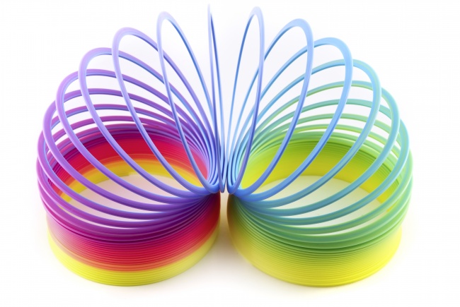 Неможливо уявити наші ностальгічні 90-е без райдужної пружинки «слінки»! Її придумав Річард Джеймс в 1943 році. Він працював морським інженером і конструював прилад для вимірювання потужності кораблів. Випадково впала і «зашагавшая» по землі пружинка поклала початок великого та успішного бізнесу. Спочатку пружинка випускалася з чорного металу, а потім знайшла колір і навіть різноманітні форми.