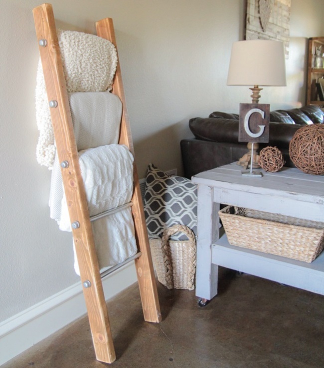 Цей предмет інтер'єру виглядає стильно і полегшує процес зберігання речей. Подібну сходи можна зробити самостійно, як це описано тут, або купити щось схоже цьому магазині.