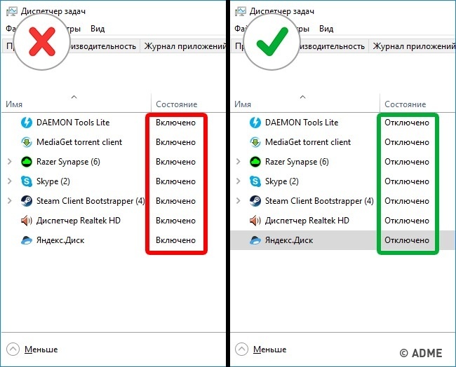 - Програми, які необхідні при запуску, можна включати і відключати вручну. Головне, не чіпайте ті компоненти, назви яких для вас незрозумілими.