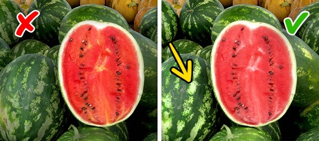 Сезон кавунів триває з серпня по жовтень, в інший час вони напхані нітратами. Необроблена кавунова кірка повинна бути контрастною, а хвостик сухим. Розрізаючи плід, не забувайте, що м'якоть інтенсивного червоного кольору і жовті волокна — ознака наявності нітратів. У здорового кавуна всередині волокна тільки білі.