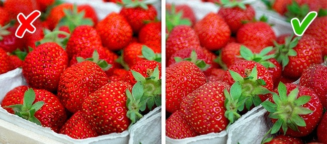 Магазинна полуниця користується попитом круглий рік, але влітку в ній повно нітратів і інших речовин. Щоб уникнути небезпечної покупки, запам'ятайте, що натуральна полуниця рідко буває ідеальної форми, а якщо вона занадто яскравого кольору, то, швидше за все, пофарбована. Остерігайтеся чорних точок — вони з'являються від селітри. І нарешті, якщо ви не відчуваєте натурального полуничного запаху, то шукайте інший прилавок.