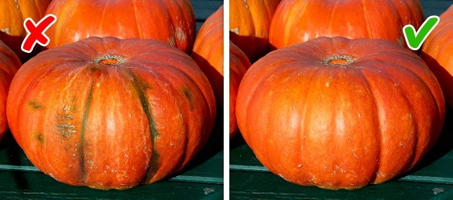 При виборі гарбуза потрібно звернути увагу на її поверхню. Чиста і гладка шкіра — ознака хороший, а ось нерівні волокнисті смужки і незрозумілі плями повідомляють про високий вміст пестицидів.